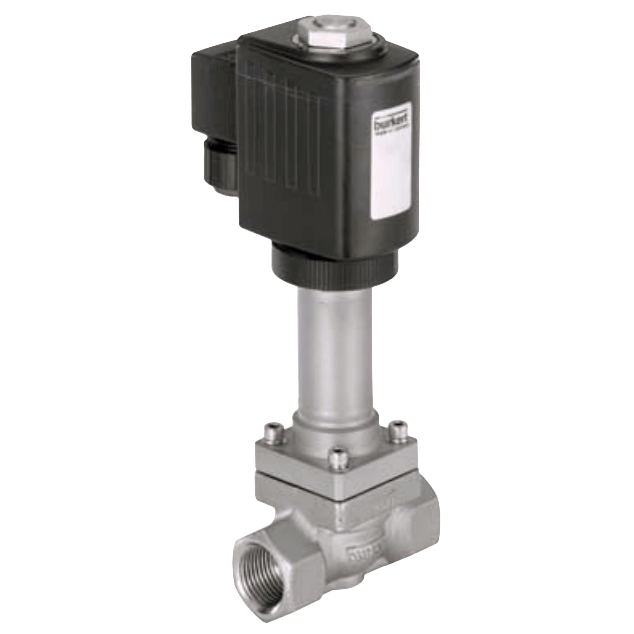 The direct-acting valve Type 2610 is delivered with circuit function normally closed. The thermal isolation of the coil and housing by means of stainless steel bellows allows the extreme medium temperature. In this way, condensation or an unacceptable heating up of the coil is avoided.