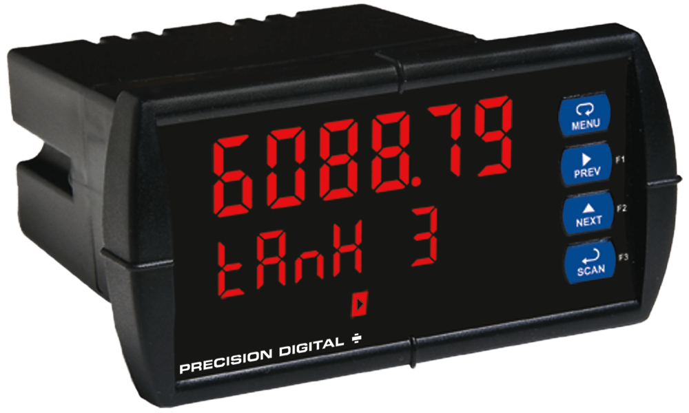The PD6088 can function as a Modbus master, slave, or snooper. As a Modbus master, the PD6088 can poll multiple Modbus devices for up to 16 Modbus process variables. As a slave, a Modbus master can write up to 16 PVs to the scanner for display. In snooper mode, it can sit anywhere on the Modbus network and display up to 16 PVs being polled on the bus.