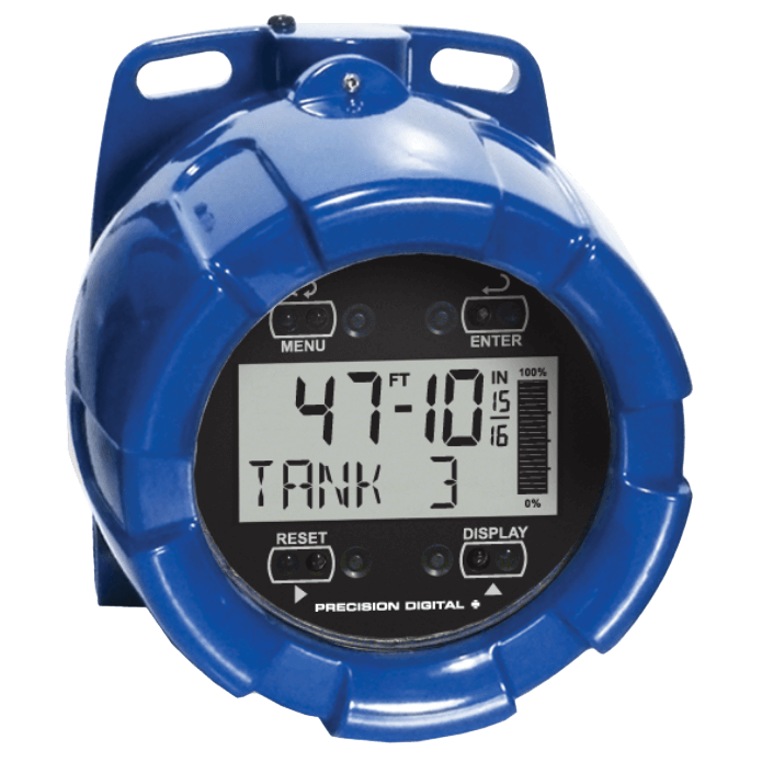 The PD6801 can indicate up to 699 feet, 11 and 15/16 (or 7/8) inches. Like all ProtEX products, the PD6801 explosion-proof level indicator carries FM, CSA, ATEX, and IECEx approvals for use in hazardous areas. It features a dual-line display that can be easily scaled in the field for any 4-20 mA analog input.