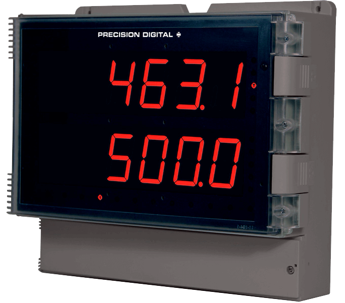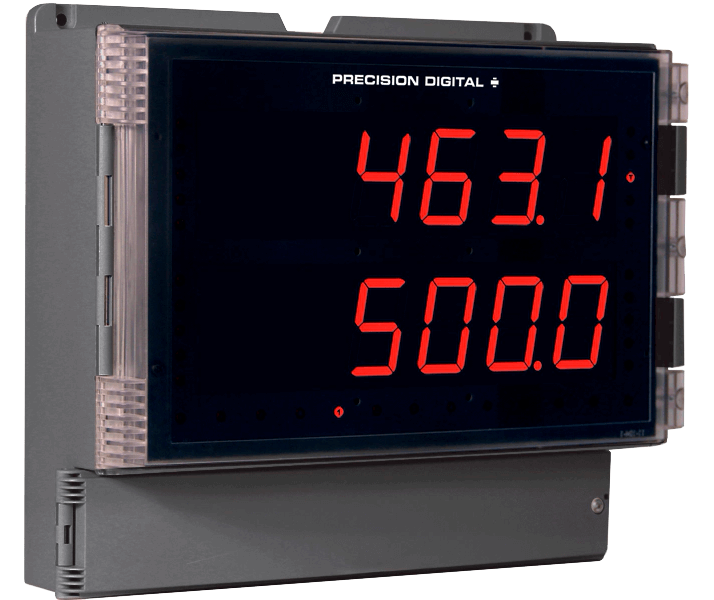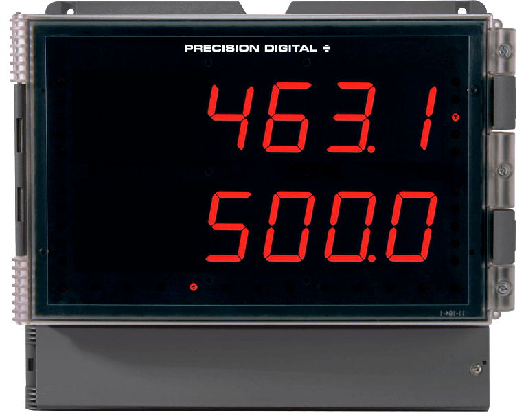 - Two lines with 1.8" (46 mm) high digits, red LEDs; 6 digits per line (-99999 to 999999), with lead zero blanking